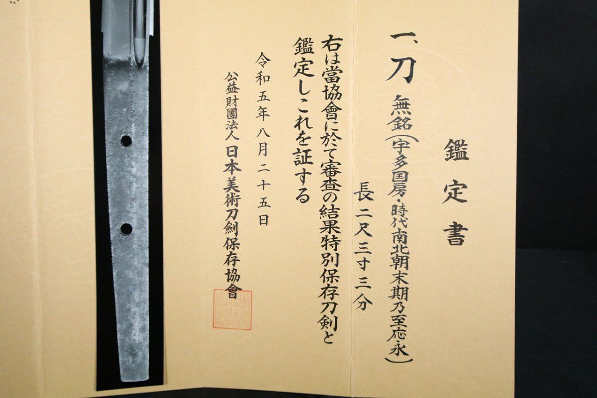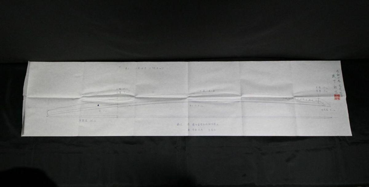 他の画像を見る 刀匠作の押形も付属 【セミオーダー新作刀】陸中国宮古住和吉作 2尺6寸刀 長さや反り樋の有無等変更可能! 当店特別価格 ¥ 660,000 税込 【居合用・試斬用・鑑賞用すべてに対応するセミオーダー刀】 カートに入れる お気に入りに登録する