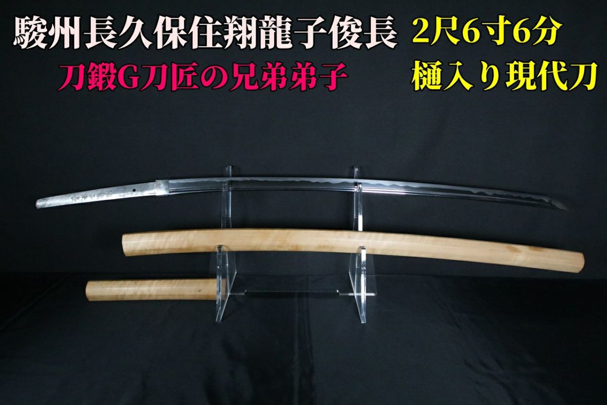 他の画像を見る 【2尺6寸超】駿州長久保住翔龍子俊長作 見どころ満載で出来の良い樋入り現代刀 80.7cm 当店特別価格 ¥ 580,000 税込 【刀鍛G刀匠の兄弟弟子の作品】 カートに入れる お気に入りに登録する