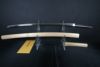 本作は杢目交じりの板目でかなり肌立っております。細直刃調の刃紋は、小湾れ交えて、刃縁に美しい小沸付き、働き盛んで砂流などが見られます。